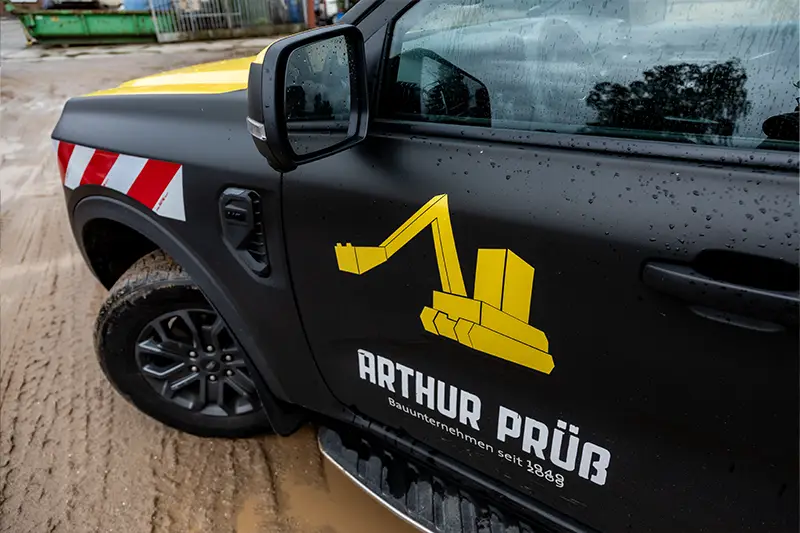 Wir haben einen Neuen auf der Baustelle. Unser Bauleiter Collin Willinski fährt ab sofort einen brandneuen Ford Ranger. Dank besonderer Folierung ist der ursprünglich weiße Ford nun in einem edlen Mattschwarz mit gelben Akzenten auf der Baustelle unterwegs. Mit großer Ladefläche und einem integrierten Terrain-Management-System wird uns der neue Ford Ranger auf jedem Gelände die Arbeit erleichtern.
