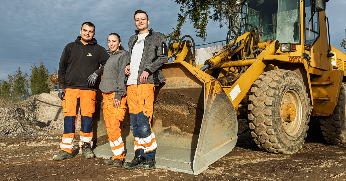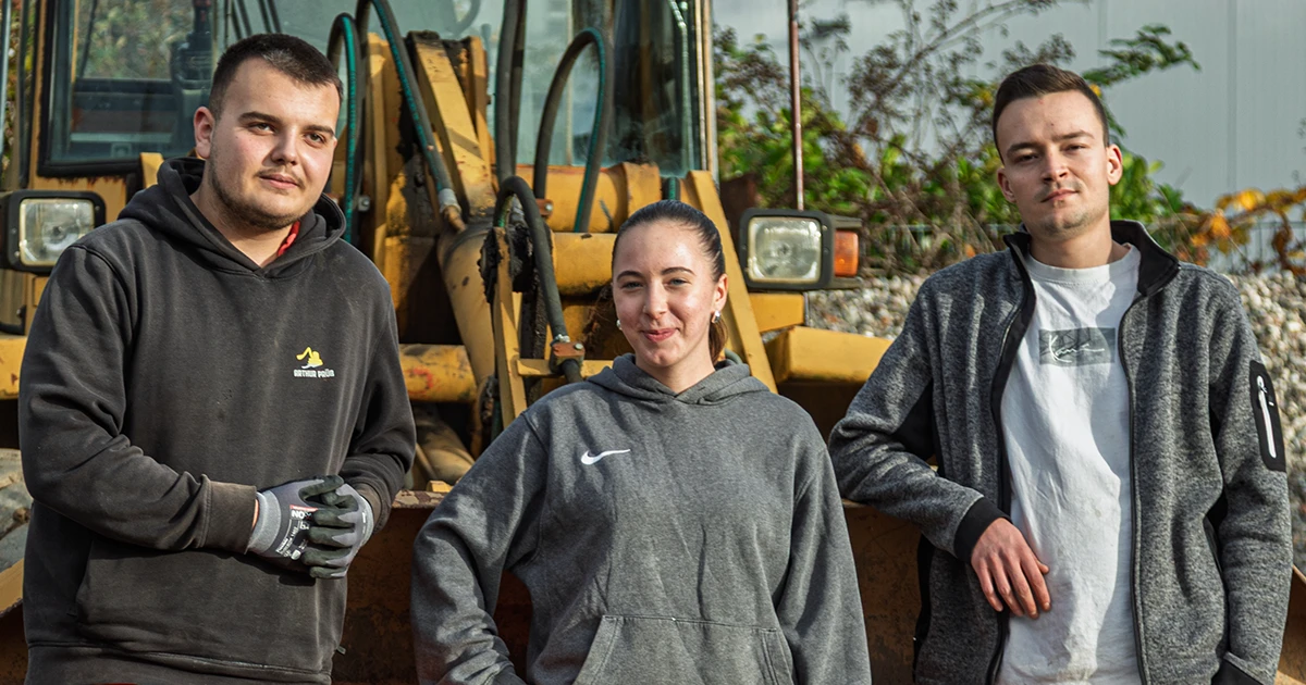 Zum ersten Mal bilden wir eine junge Frau zur Tiefbaufacharbeiterin aus. Jaycine hat nach einem einwöchigen Praktikum während ihrer Schulzeit ihr Interesse an handfester, körperlicher Arbeit, dem Umgang mit Maschinen und dem freundlichen Miteinander in unserem Team entdeckt. Inzwischen hat sie sich gut eingearbeitet und unterstützt uns tatkräftig.